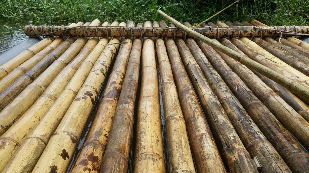 Una vez en el sitio de partida, abordamos las balsas hacia nuestra aventura extrema, después que el equipo de balseros las acondicionaran con lo mínimo necesario para la travesía, sillas, techos coloridos para proteger del sol, canecas para guardar objetos personales y mantenerlos secos y recipientes en donde iría el almuerzo y refrigerio. Con nuestros salvavidas puestos, obligatorios para todos, tras haber recorrido tan solo unos metros, nos zambullimos en las tranquilas aguas del Rio la Vieja, por donde transitan las balsas artesanales fabricadas con guadua (bambú), los cuales son amarrados entre sí por cabuyas de fique con amarres aprendidos en este trajinar cotidiano y tubos de PVC a lo largo para garantizar flotabilidad y estabilidad a la estructura de 8m de largo y 2.50 m de ancho. El “boga”, o conductor principal de la balsa es el conocedor del rio, quien la direcciona y manipula ayudándose con una vara de bambú de unos 4 m de largo, toca fondo y empuja, apoya todo su cuerpo para girar o para frenar, se lanza sin miedo, conoce cada rincón, cada corriente y cada movimiento de estas aguas. El era quien nos indicaba los sitios seguros para zambullirnos, nos daba instrucciones sobre la manera de nadar para aprovechar la corriente y alejarnos de las orillas o de piedras que pudieran lastimarnos. En algunos tramos del recorrido nos indicaba que había “rápidos” para que los más arriesgados nos lanzáramos a sentir la adrenalina del momento.